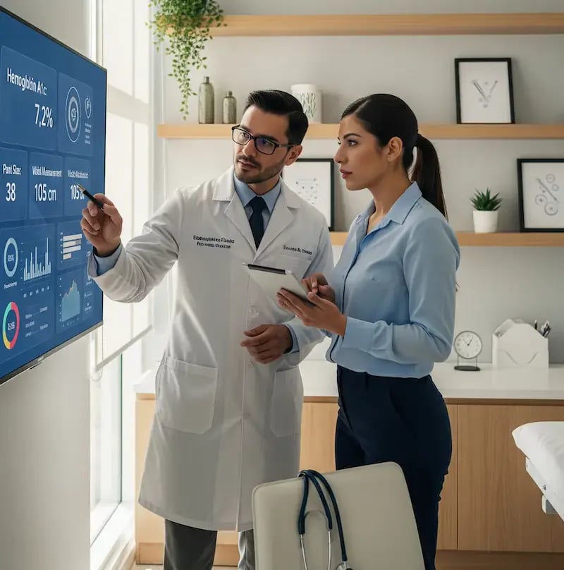 A diferencia de la consulta presencial trimestral, los ajustes en la clínica digital ocurren cuando los datos lo indican, no cuando el calendario lo permite. Si el monitoreo muestra que el control glucémico se está desviando, el médico actúa de inmediato.